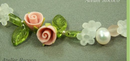 NaturalStone【Rococo】スモーキークオーツと薔薇入りとんぼ玉