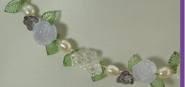 【Rococo】ベネチアン天然石ばかりの アメジスト・ローズクオーツロングネックレス 手彫りのローズクオーツの、可愛らしい薔薇...